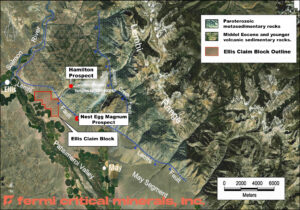 The Ellis Project is situated in Lemhi County, Idaho, 16 miles northeast of the town of Challis and 42 miles southwest of Salmon, Idaho. The project consists of 52 Federal unpatented lode mining claims totaling approximately 1,070 acres. The geology of the Ellis Project has not been mapped in detail, but is situated in the western pediment of the Lemhi Mountains, a high-relief range in central Idaho.